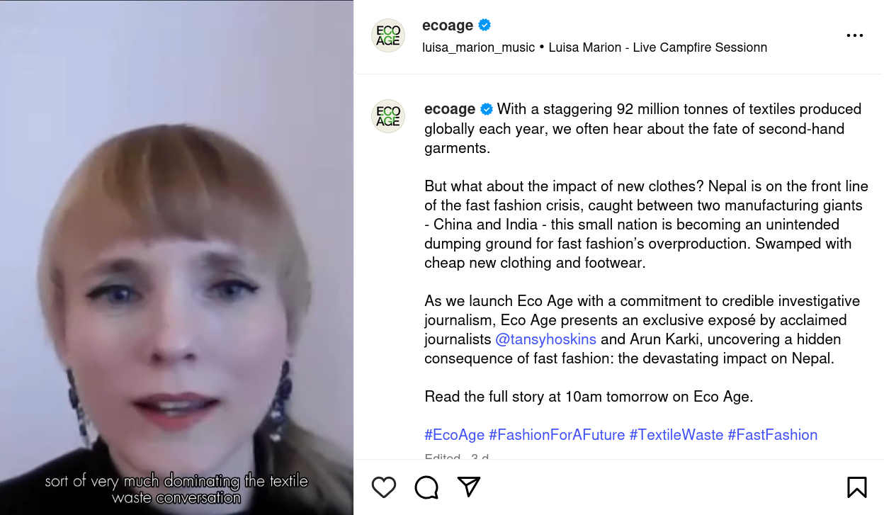 - I'm grateful to Eco Age for making this their flagship story and to the whole team for their hard work. It's entirely possible these days to work for months on a story only to have it stuck on a small corner of a website, but Eco Age really wanted to work on how to get the investigation read and worked hard on different delivery methods including recording interviews with Arun and I which are being released on Instagram - for which we got an additional fee 👏. I wanted to mention this because there is a lot of bad news about journalism atm so it's nice to have had a positive experience!