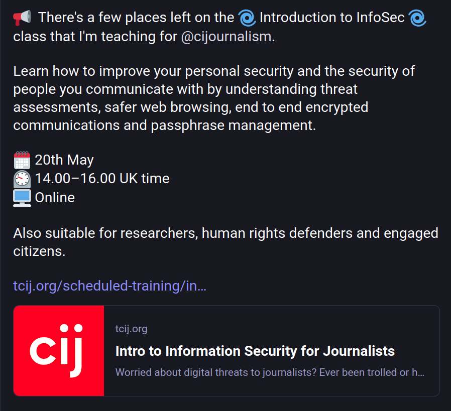 p.s. I'm teaching InfoSec this month and there is a place or two left. Bookings and more info here.