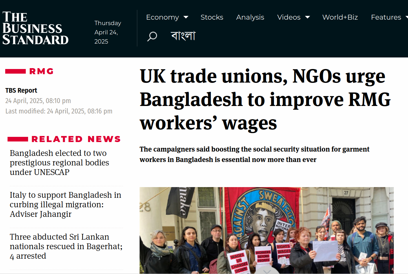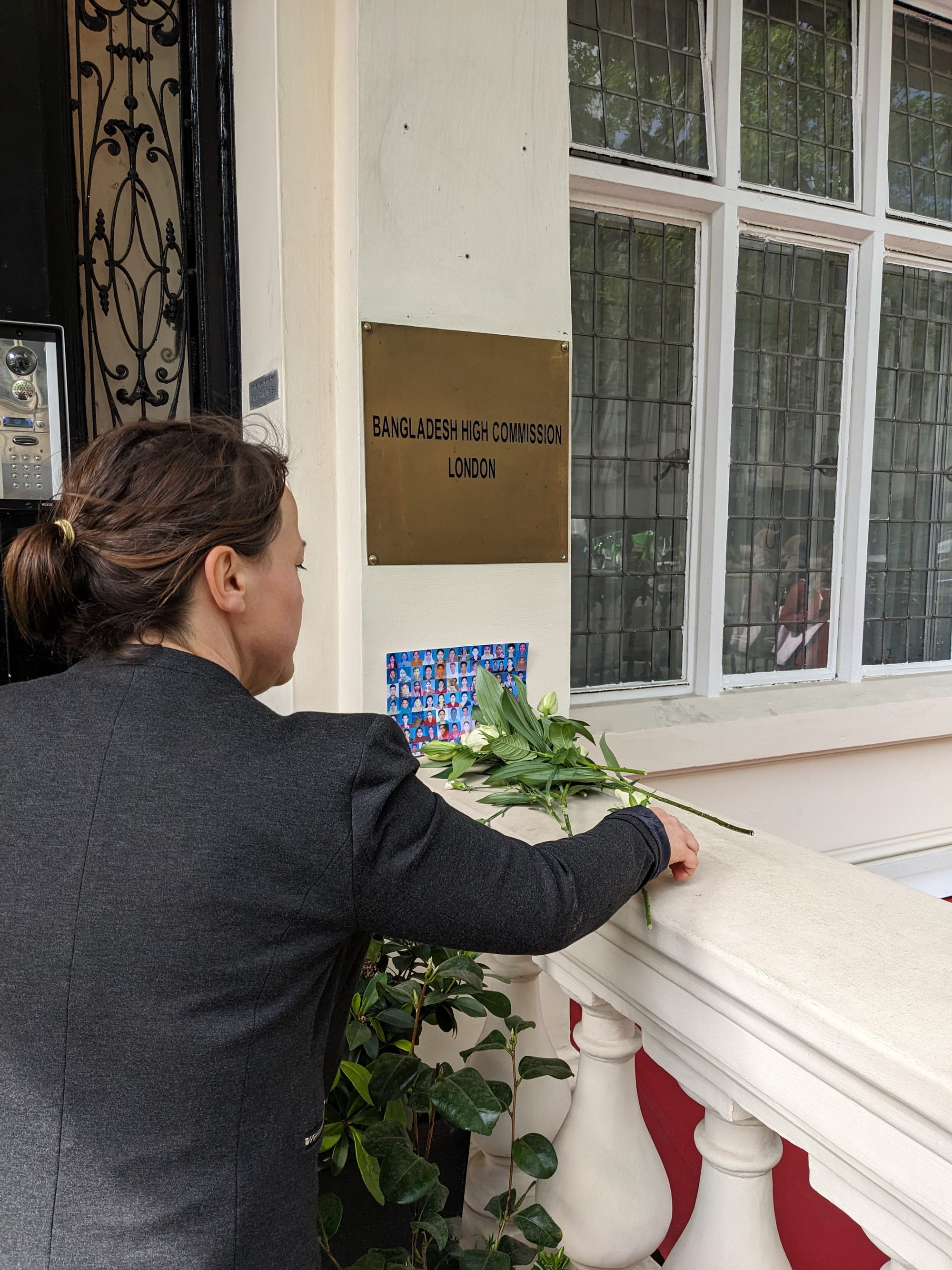 On the 12th anniversary of Rana Plaza, the Rana Plaza Solidarity Collective went to the Bangladesh High Commission in London to urge the new government in Bangladesh to pay garment workers a living wage and assure trade union freedoms.
