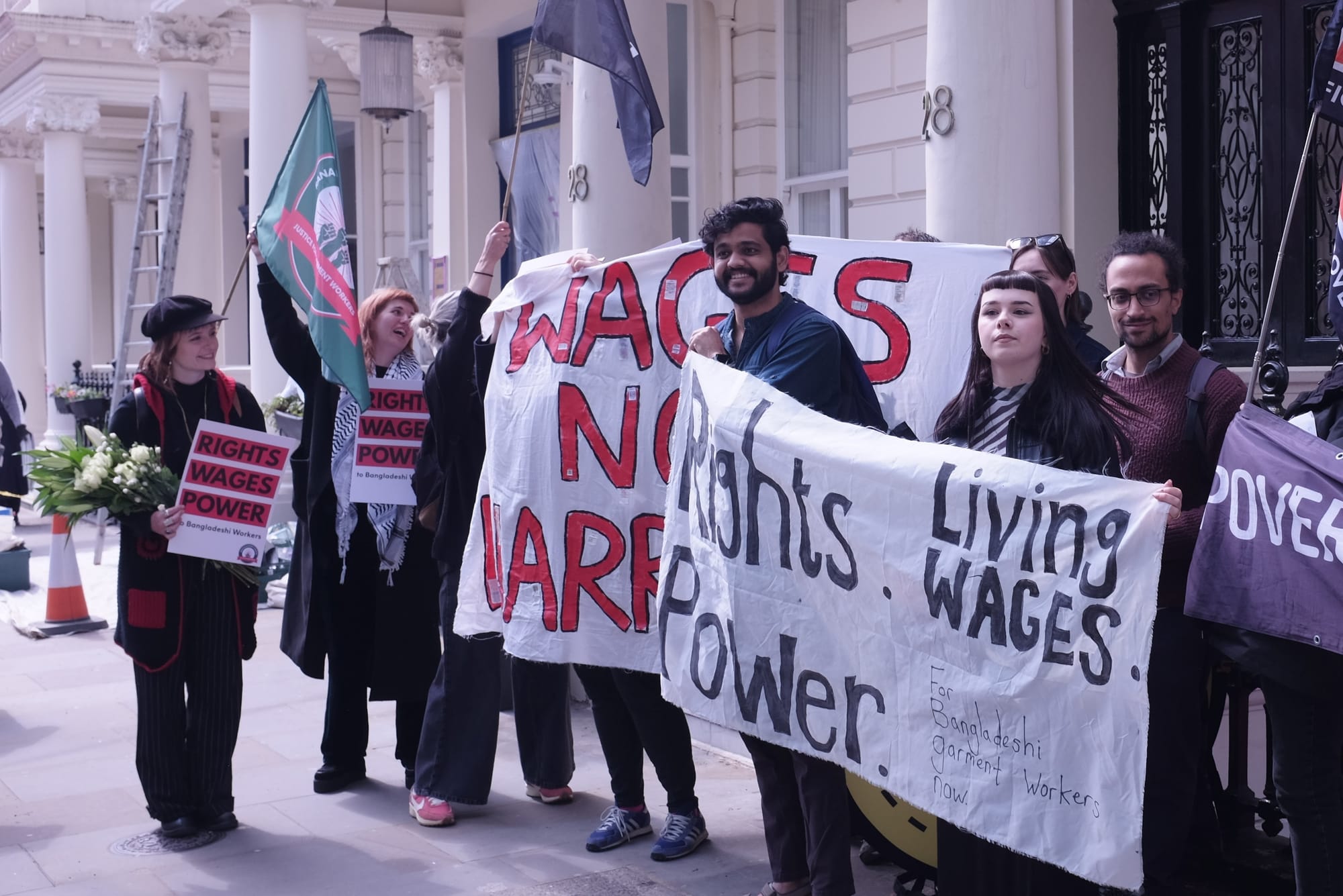 On the 12th anniversary of Rana Plaza, the Rana Plaza Solidarity Collective went to the Bangladesh High Commission in London to urge the new government in Bangladesh to pay garment workers a living wage and assure trade union freedoms.