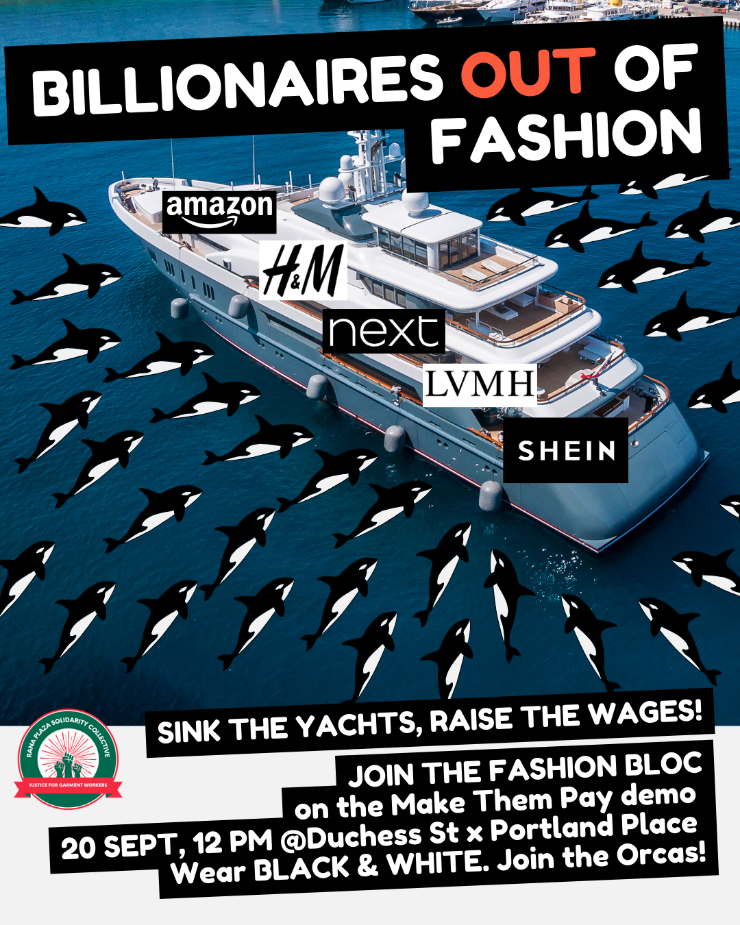 On the 20th September 2025, the Rana Plaza Solidarity Collective is gathering in Central London to join the Make Them Pay demonstration – a global day of action highlighting inequality in the lead up to COP 30 in Brazil.