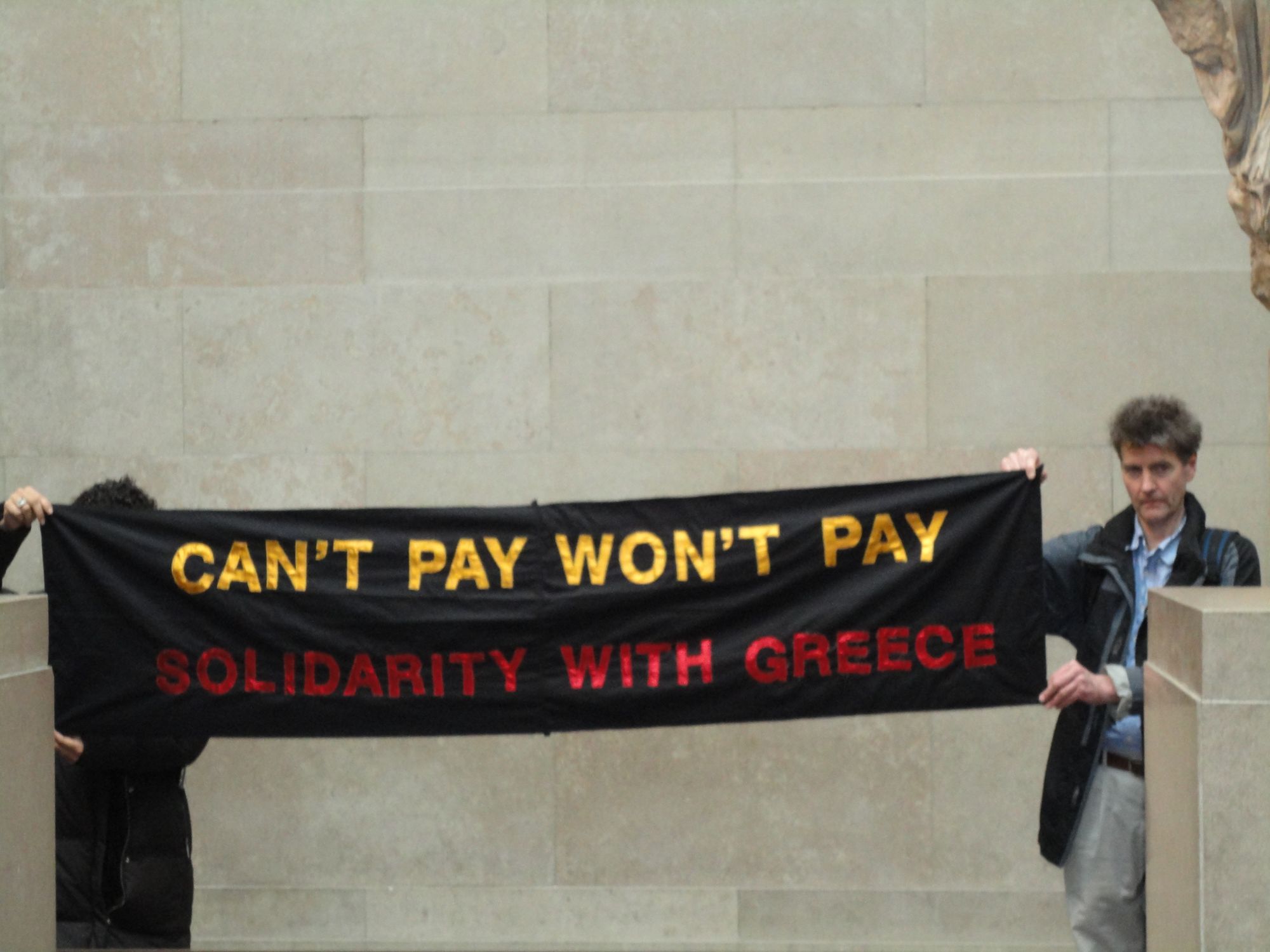 Neil’s good friends in archaeology supported the tour, some of the establishment boycotted the events as they were unhappy at the politics. The best bit was holding a protest inside the British Museum, with Despina and Neil holding up a banner saying Can’t Pay Won’t Pay – Solidarity With Greece, and demanding the return of the Parthenon Marbles.