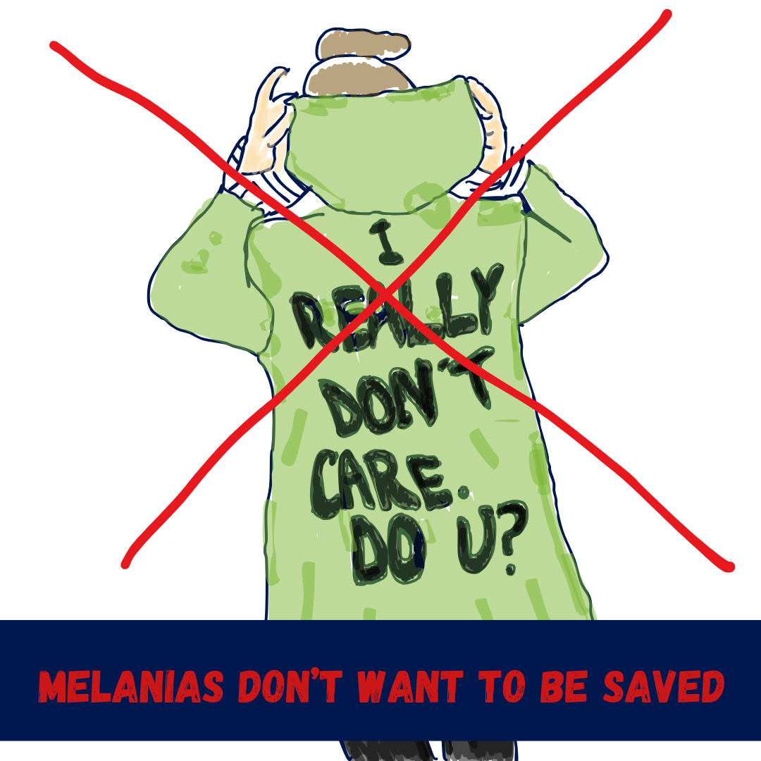 As a small start let's fix some issues in protest culture. Firstly, every anti-Trump demo last time round had 'free Melania' placards but here's the thing, as Mekka Okereke on Mastodon said: You're trying to free Melania, but she doesn't want to be saved.