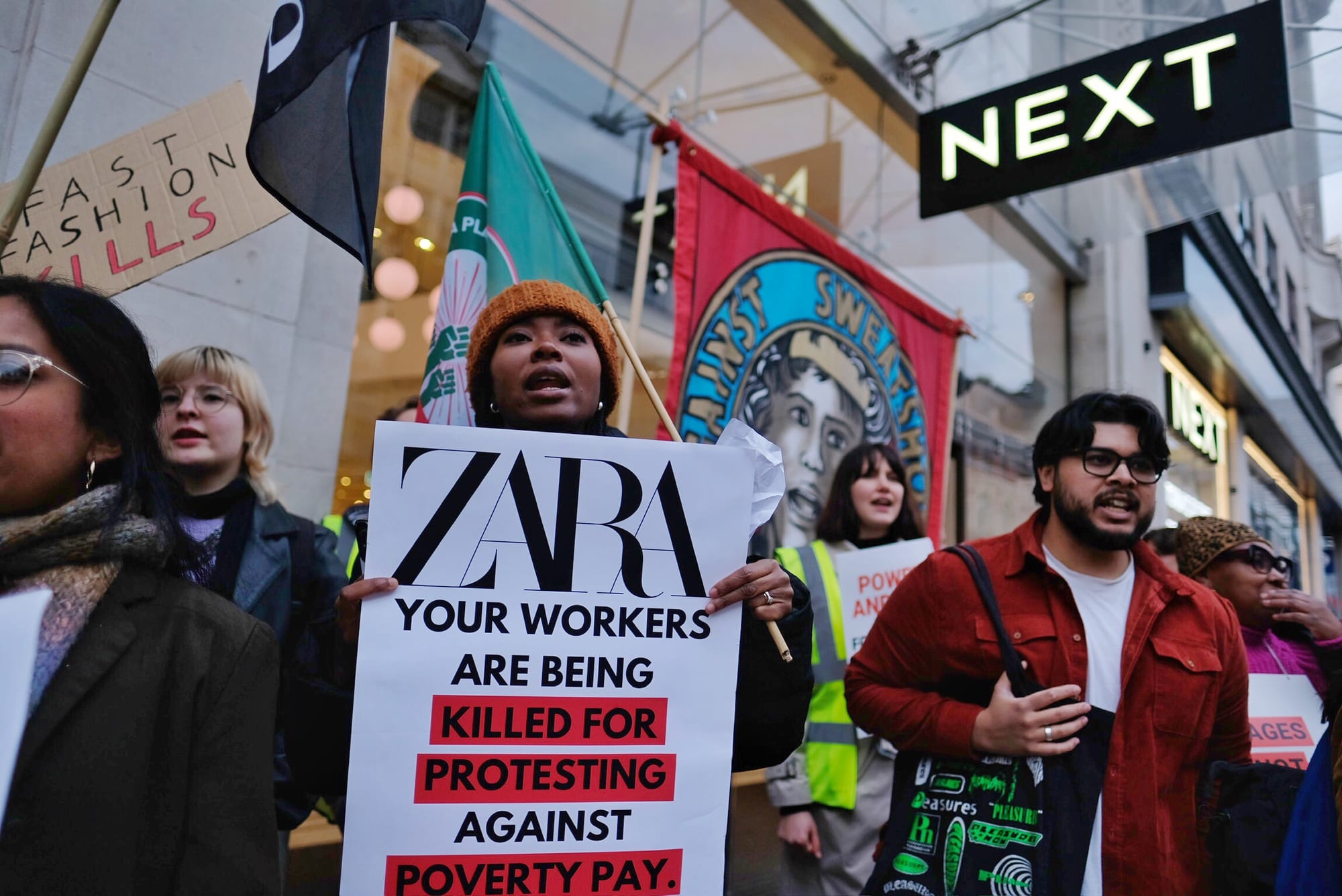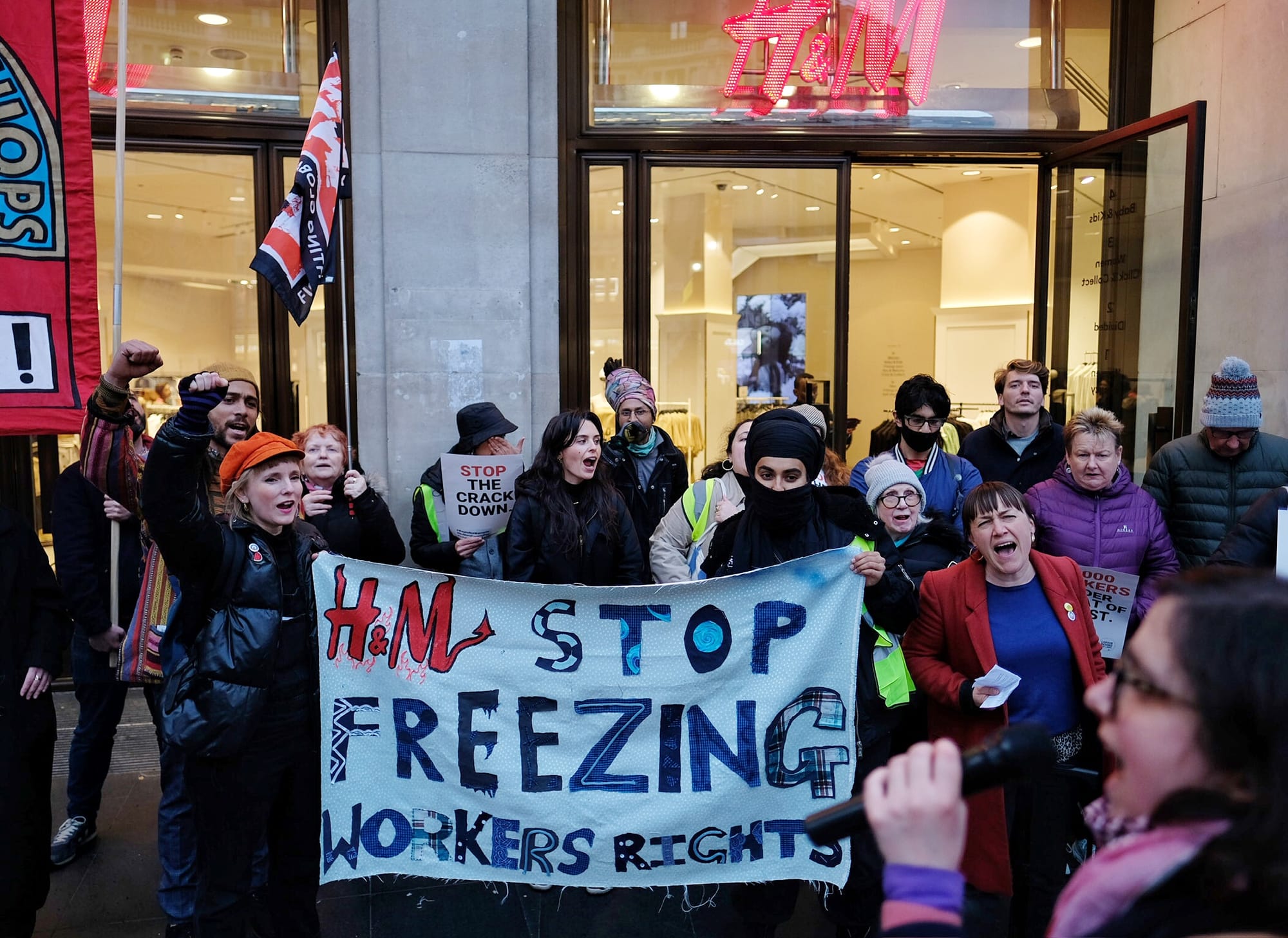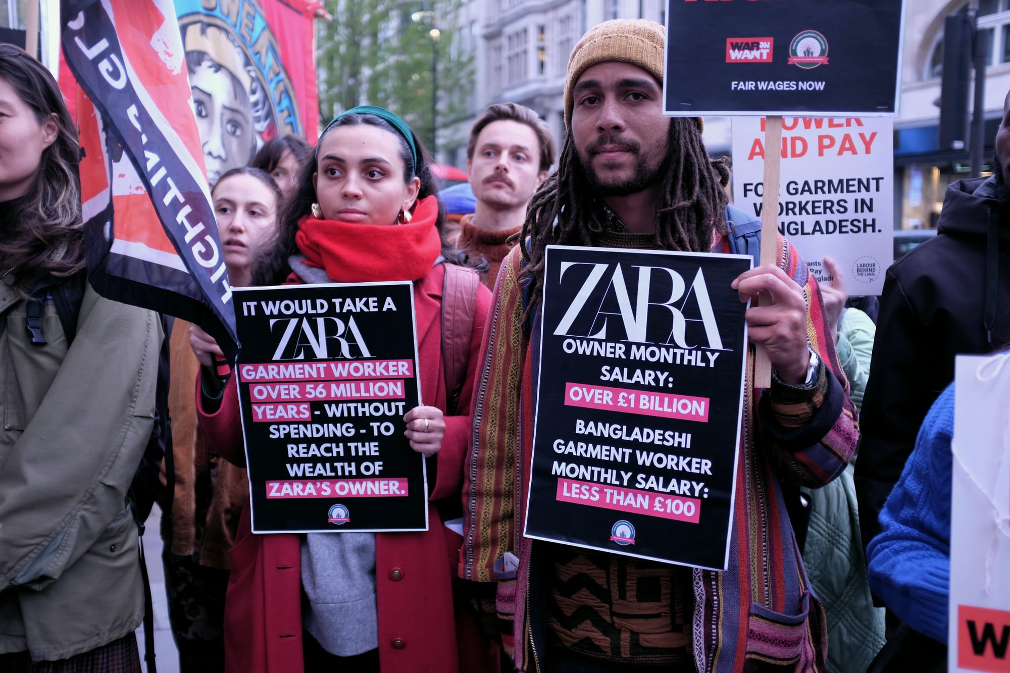 This is why yesterday, for the eleventh anniversary of Rana Plaza we held a minutes silence to commemorate the 1,138 people who died in the factory collapse, and then we went to Primark, Zara, NEXT and H&M on Oxford Street – to bring into focus the billionaire tyrants who are watching over this repression in Bangladesh and reaping the rewards.
