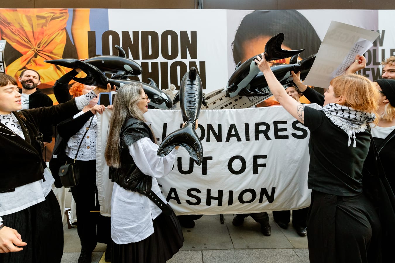 This is why we took a pod of Orcas to London Fashion Week because Orcas know a thing or two about flipping yachts – sinking these obscene symbols of greed and reclaiming their home as a billionaire-free zone.