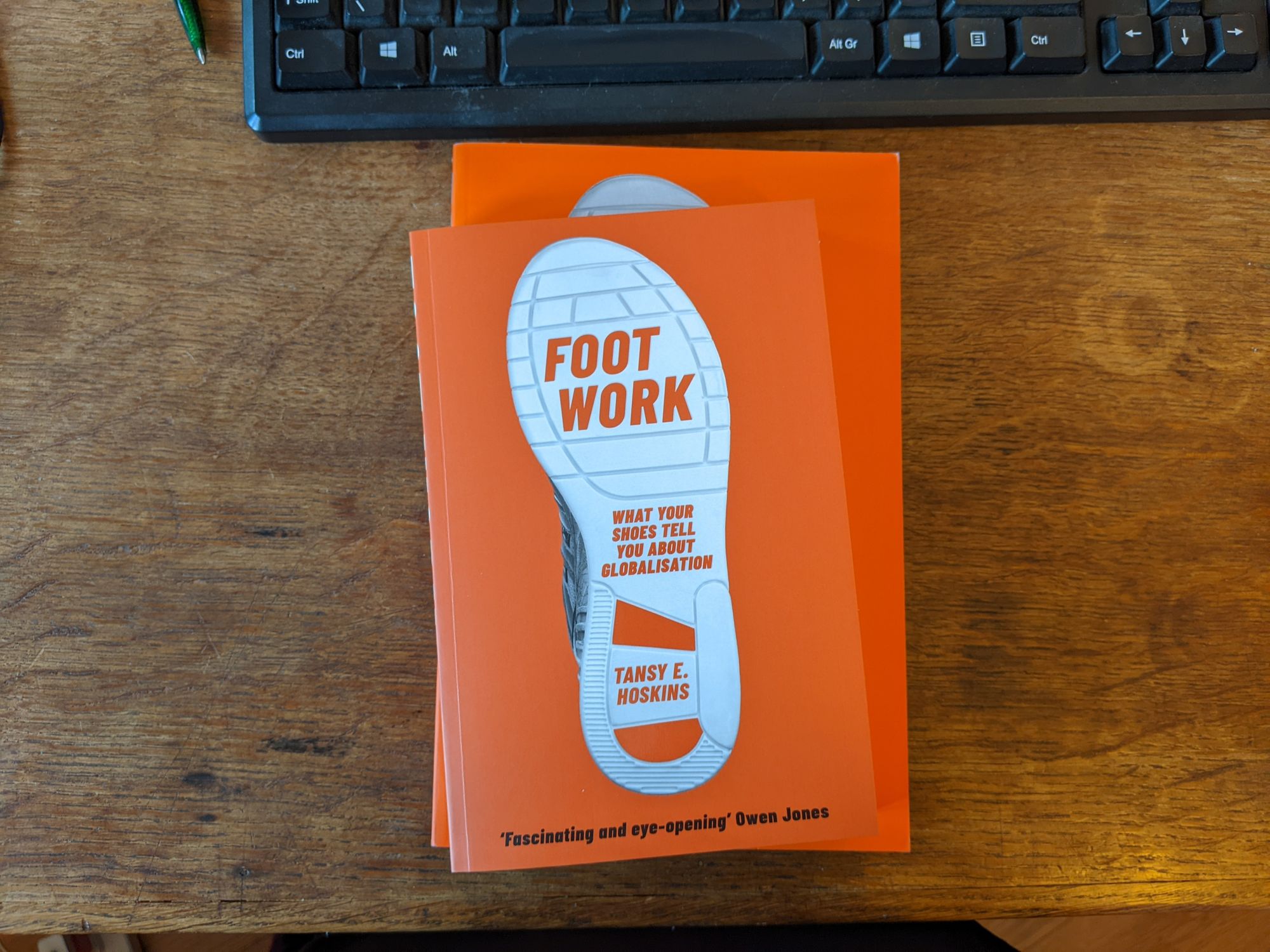 I have some book news - today is the launch of the new paperback edition of Foot Work. This is a smaller, cuter edition than the original trade paper back and it includes a brand new foreword about the impact of the Covid-19 pandemic on shoe workers around the globe. We've also switched the tag line to Foot Work - What Your Shoes Tell You About Globalisation.